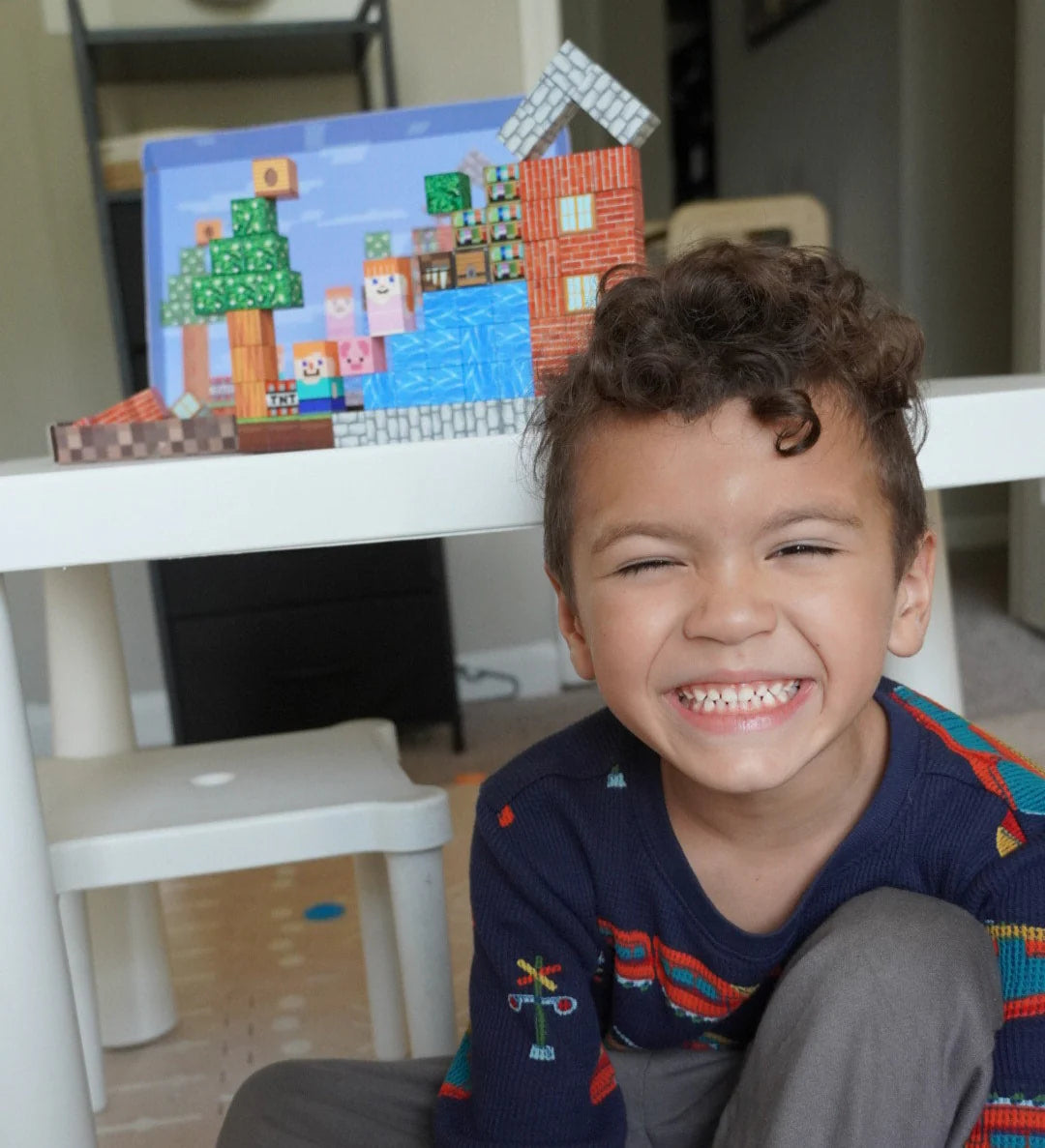 Les cubes Boogloo™ sont des blocs magnétiques au design pixelisé inspiré de Minecraft, conçus pour captiver les enfants sans écran. En manipulant et assemblant les blocs, ils développent leur motricité fine, stimulent leur imagination et apprennent les bases de la construction et de la logique. Chaque création devient une source de fierté et de plaisir tactile, tandis que le jeu favorise le partage et la collaboration en famille. Avec Boogloo™, les enfants s’amusent, explorent et apprennent pendant des heures, dans un monde concret et créatif.